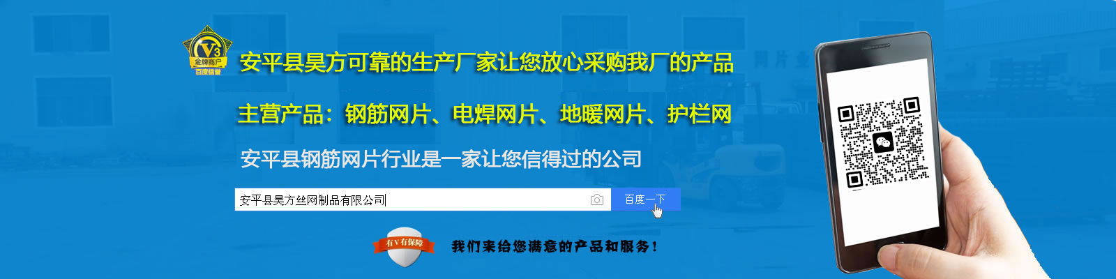 安平縣坤鼎絲網(wǎng)制品有限公司(原安平縣鑫平護(hù)欄網(wǎng)廠)位于安平縣油子開發(fā)區(qū),是專業(yè)生產(chǎn)各種公路護(hù)欄網(wǎng)、高速公路護(hù)欄網(wǎng)、小區(qū)護(hù)欄網(wǎng)、金屬焊接防盜網(wǎng)、鐵路隔離防護(hù)網(wǎng)、防眩網(wǎng)、防拋網(wǎng)、機(jī)場(chǎng)隔離網(wǎng)、圍網(wǎng)、圍欄網(wǎng)、場(chǎng)地圍網(wǎng)、體育圍網(wǎng)、運(yùn)動(dòng)場(chǎng)圍網(wǎng)、小區(qū)圍網(wǎng)、生活區(qū)圍網(wǎng)、倉(cāng)庫(kù)隔離網(wǎng)、圍山網(wǎng)、圍墻網(wǎng)、建筑用網(wǎng)的專業(yè)廠家。 本廠以“質(zhì)量求生存,客戶是上帝,交貨及時(shí),價(jià)格合理,服務(wù)周到”的宗旨為廣大客戶服務(wù);本著“質(zhì)量求生存,信譽(yù)謀發(fā)展”的生產(chǎn)原則,贏得了廣大新老客戶的好評(píng)。多年來(lái),我們憑借吸納進(jìn)的技術(shù)、過(guò)硬的質(zhì)量、良好的信譽(yù)和服務(wù)、與多家客商建立了穩(wěn)固的供貨關(guān)系,客戶遍及全國(guó)各地和地區(qū)。經(jīng)過(guò)多年的發(fā)展,我廠一貫堅(jiān)持以科學(xué)的管理和嚴(yán)格的檢驗(yàn)制度,確保防護(hù)網(wǎng)產(chǎn)品的合格率,并以可靠的信譽(yù)和服務(wù),贏得了新老客戶的信譽(yù)和贊譽(yù)。...